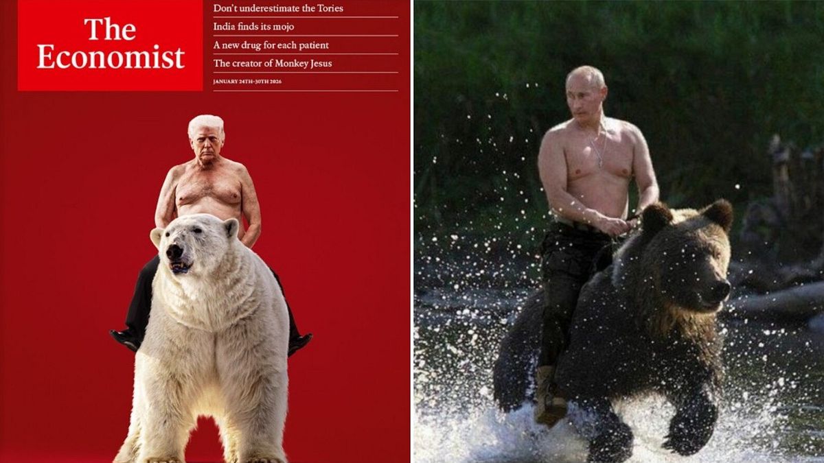Il presidente Usa "in posa" come nello storico meme del collega russo. Il messaggio di prevaricazione, l'uno sulla Groenlandia, l'altro sulla stessa...